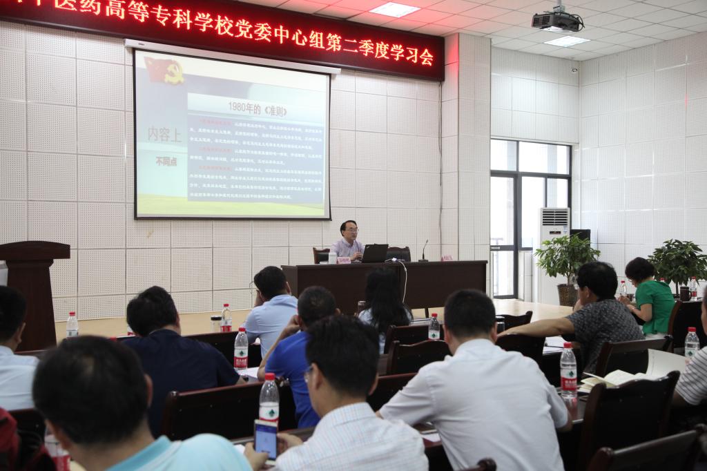 秦晓明书记以《关于新形势下党内政治生活的若干准则》学习与贯彻的几点思考为题,对准则产生的背景、1980年与2016年两个时期《准则》的对比、新《准则》的主要内容等进行了解读与阐述,并提出了学习贯彻的思考意见。他指出,高校肩负着立德树人的神圣使命,加强党风廉政建设和反腐败工作是全面推进学校事业又好又快发展的内在需要。聚焦高等教育的改革发展,要把握新的历史特点,一是供需关系在变,二是外部需求在变;三是国际市场在变;四是教育对象在变;五是资源条件在变。面对新的形势和任务,我校必须坚持创建“一流的专业和学科”、创建“一流职业教育”的办学理念,以市场和行业需求为导向,以学科建设为重点,突出中西医并重,坚持开门开放办学,以改革创新为动力,以团结协作为保障;无论是领导干部、教授专家还是普通职工,都要对自己的职业操守保持高度自觉,切实履行好自己肩负的政治责任,首先是理想信念不能淡化、要有一往无前的精神作保障;其次是方法重点不能弱化、要有久久为功的措施作保障;第三是统筹协调不能虚化、要有以一当十的队伍作保障。