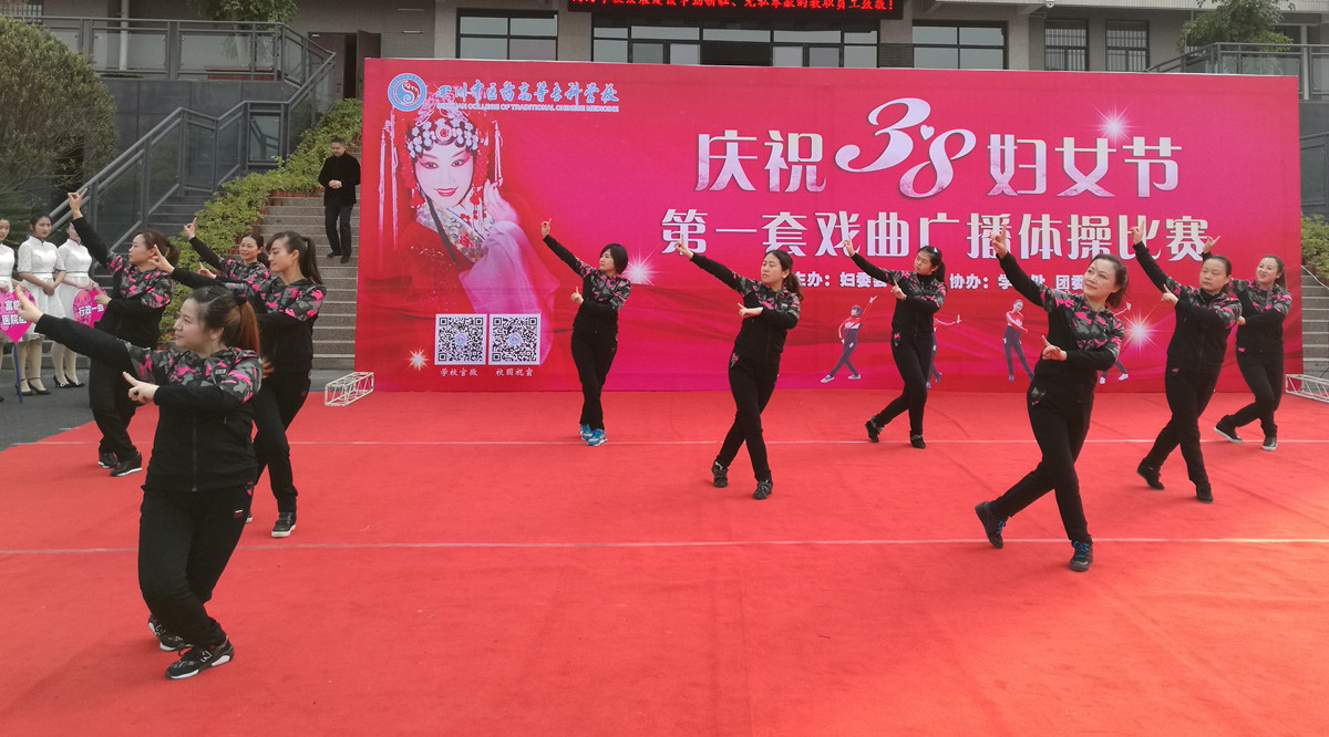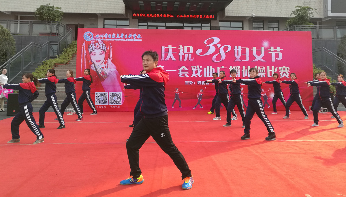 为庆祝“三八”国际劳动妇女节,充分展示我校女职工健康向上的精神风貌,3月7日,校工会、校妇委会、校团委联合举办了第一套戏曲广播体操比赛。戏曲广播体操是我国有史以来首次推出,为了更好地践行优秀传统文化进校园,我校在全国率先将其引入高校校园;本次比赛共9个组,其中教职工6个组,学生3个组,共200余人参加比赛。