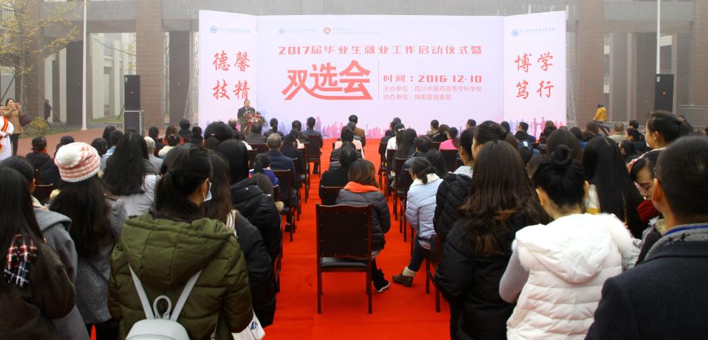 为切实做好毕业生就业工作,为用人单位和毕业生搭建良好的沟通平台,12月10日,我校2017届毕业生就业工作启动仪式暨双选会在学校银杏大道举行。绵阳市人才服务中心主任曾幼专,市级各相关单位领导、我校领导班子成员和包括绵阳市中心医院、四川绵阳科伦医药贸易有限公司等在内的200余家企事业单位代表参加了仪式;我校党委副书记、纪委书记代红英主持。