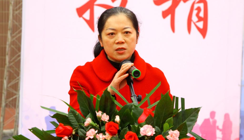 图为:我校校友、绵阳市中心医院护理部主任王海燕在启动仪式上讲话
