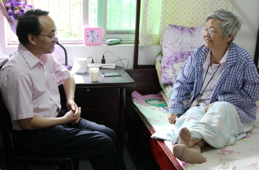 (图为:党委书记秦晓明看望李慧群老师)