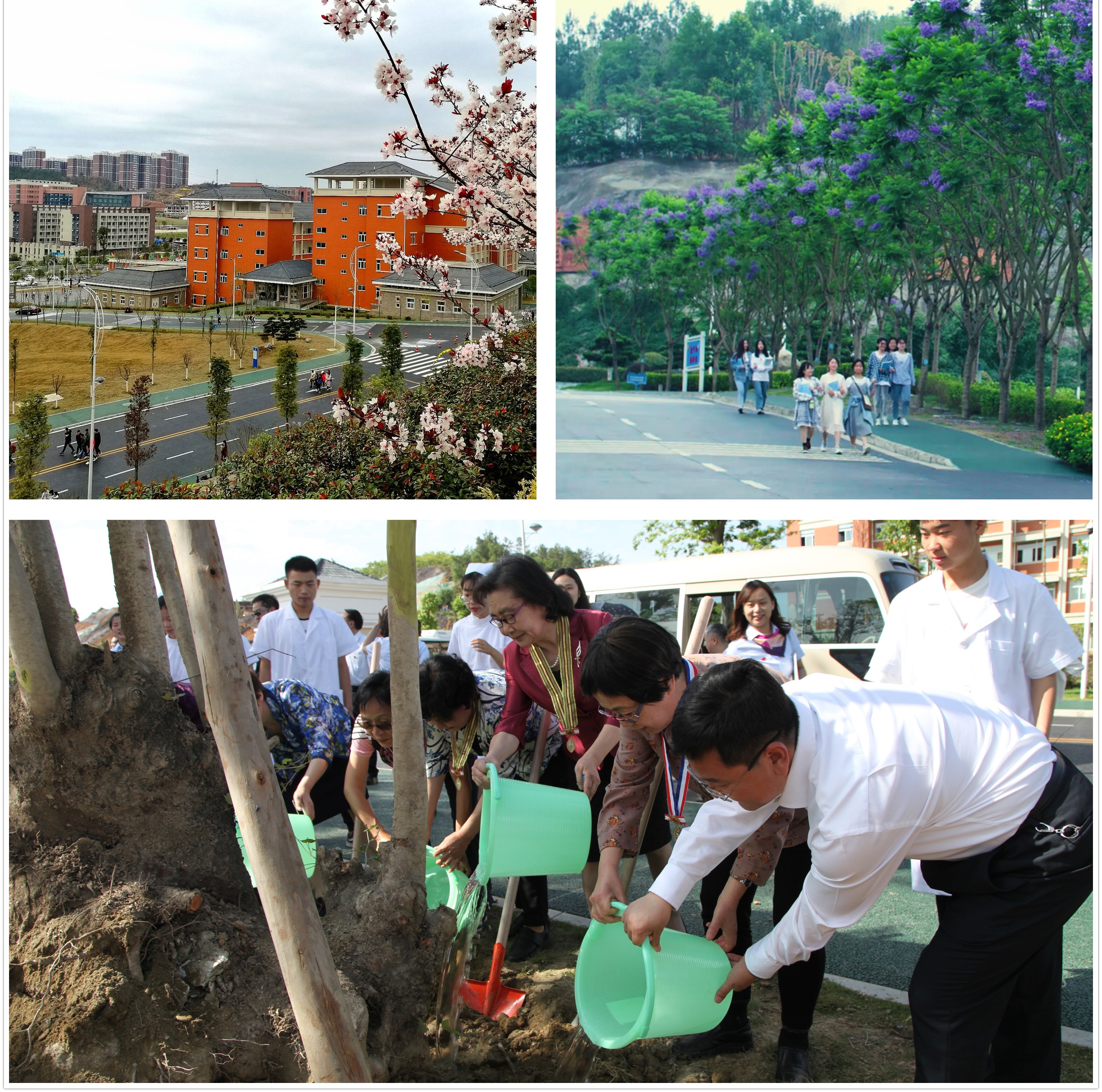 七年前我校迁入新校区后,校党委确立并坚持“跳出校园抓教育、围绕民生办教育”的办校模式和“教学生成才,为发展服务,让群众满意”的服务理念。面对当时泥土裸露、尘土飞扬的校园,校党委向全校师生以及包括校友在内的各方力量发出了“我为校园添绿叶”的倡议,管理干部带头对树木认捐认领认养,种植了银杏、杜仲、槐树等60余种中药木本植物;开展了毕业生离校前“我请老师赠一言”“我为母校植一树”等“五个一”活动。