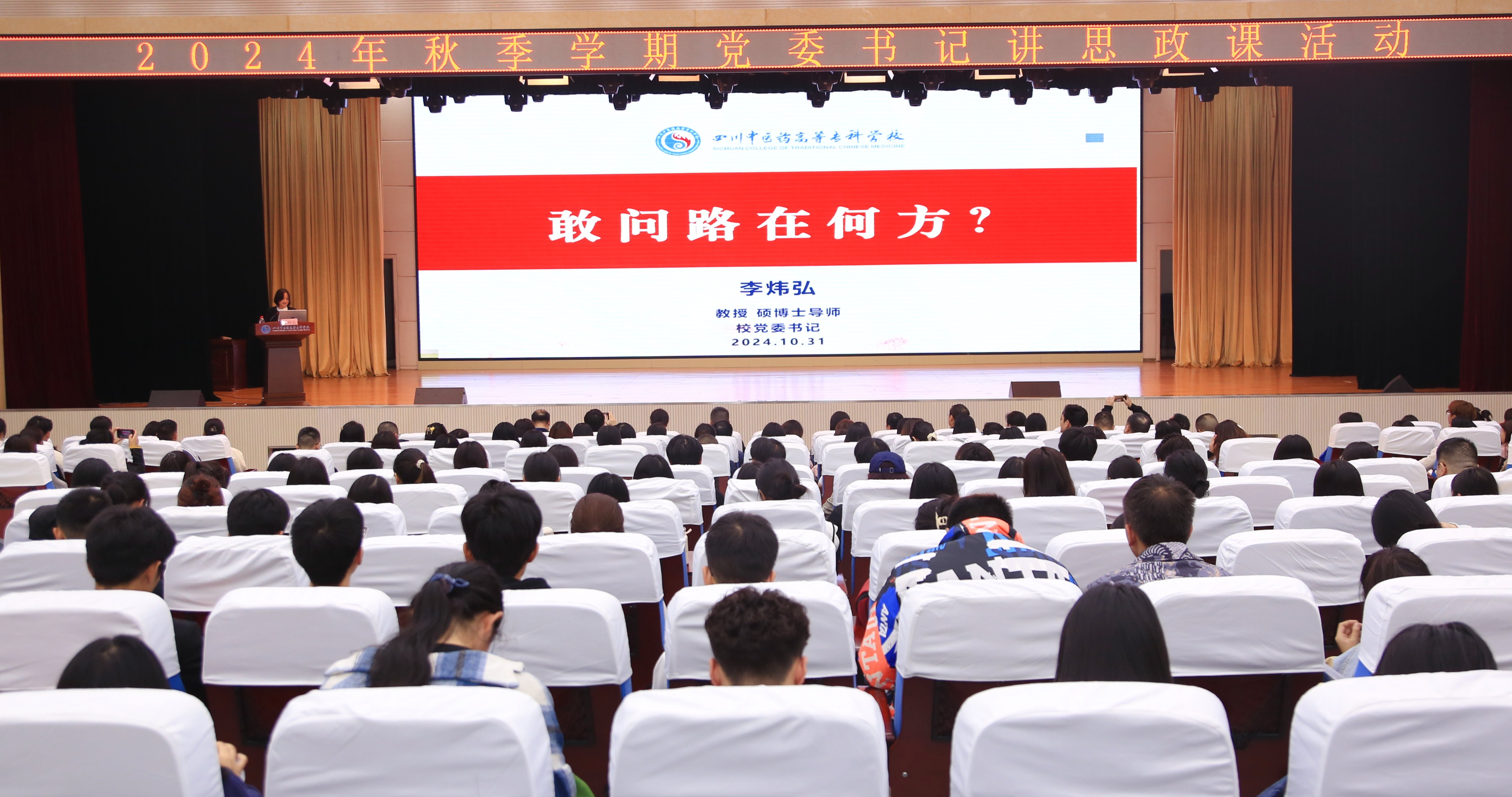 为认真学习贯彻党的二十届三中全会和全国教育大会精神,坚持培养德智体美劳全面发展的社会主义建设者和接班人,10月31日,2024年秋季学期党委书记讲思政课活动在北园礼堂学术厅举行,学校党委书记李炜弘以《敢问路在何方——我的未来我做主》为题,为全校师生带来了一堂立意深远又饱含深情的思政课,引导全校同学立大志、求真知、强本领。