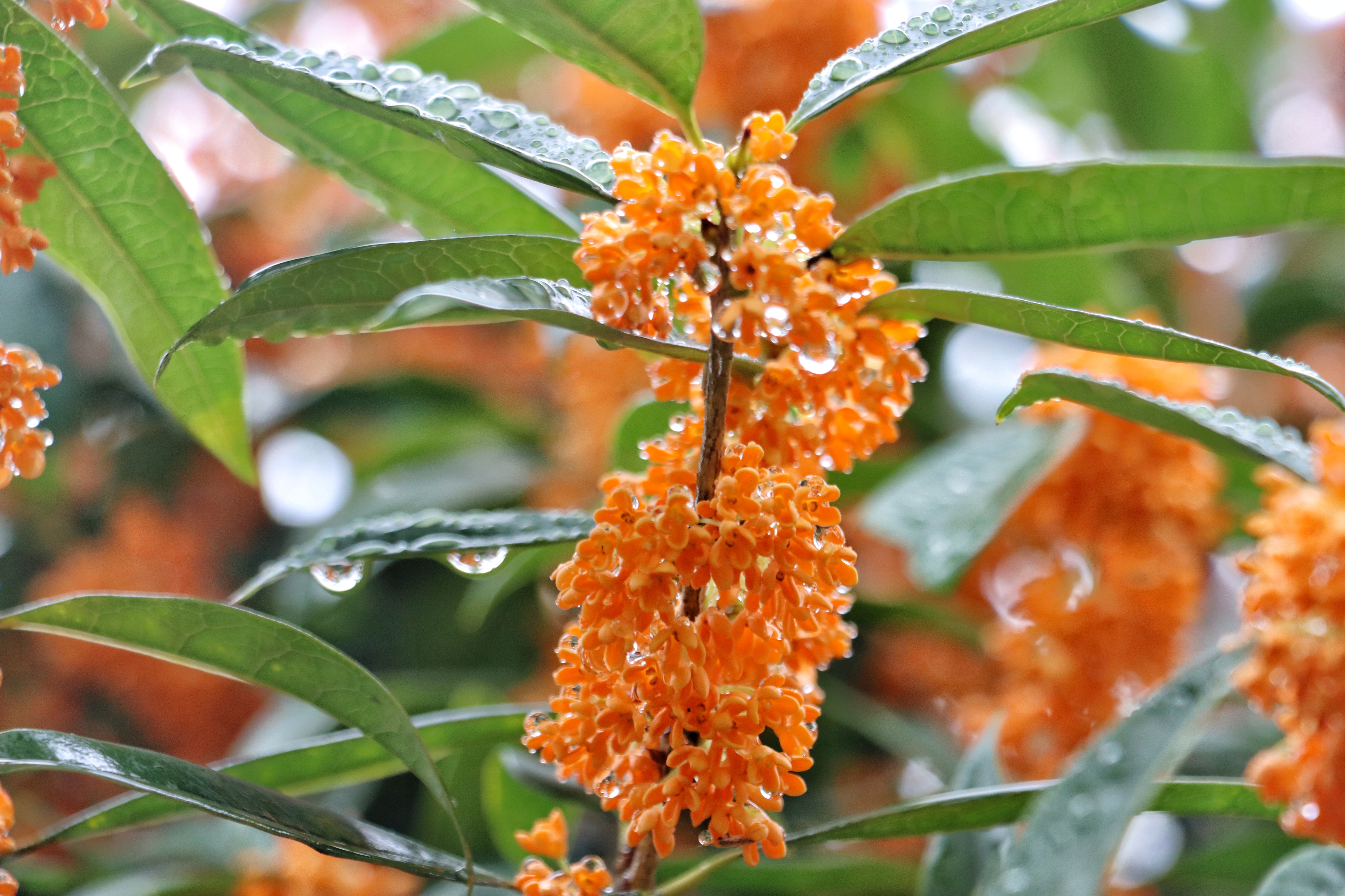串串花朵上挂着晶莹的水珠