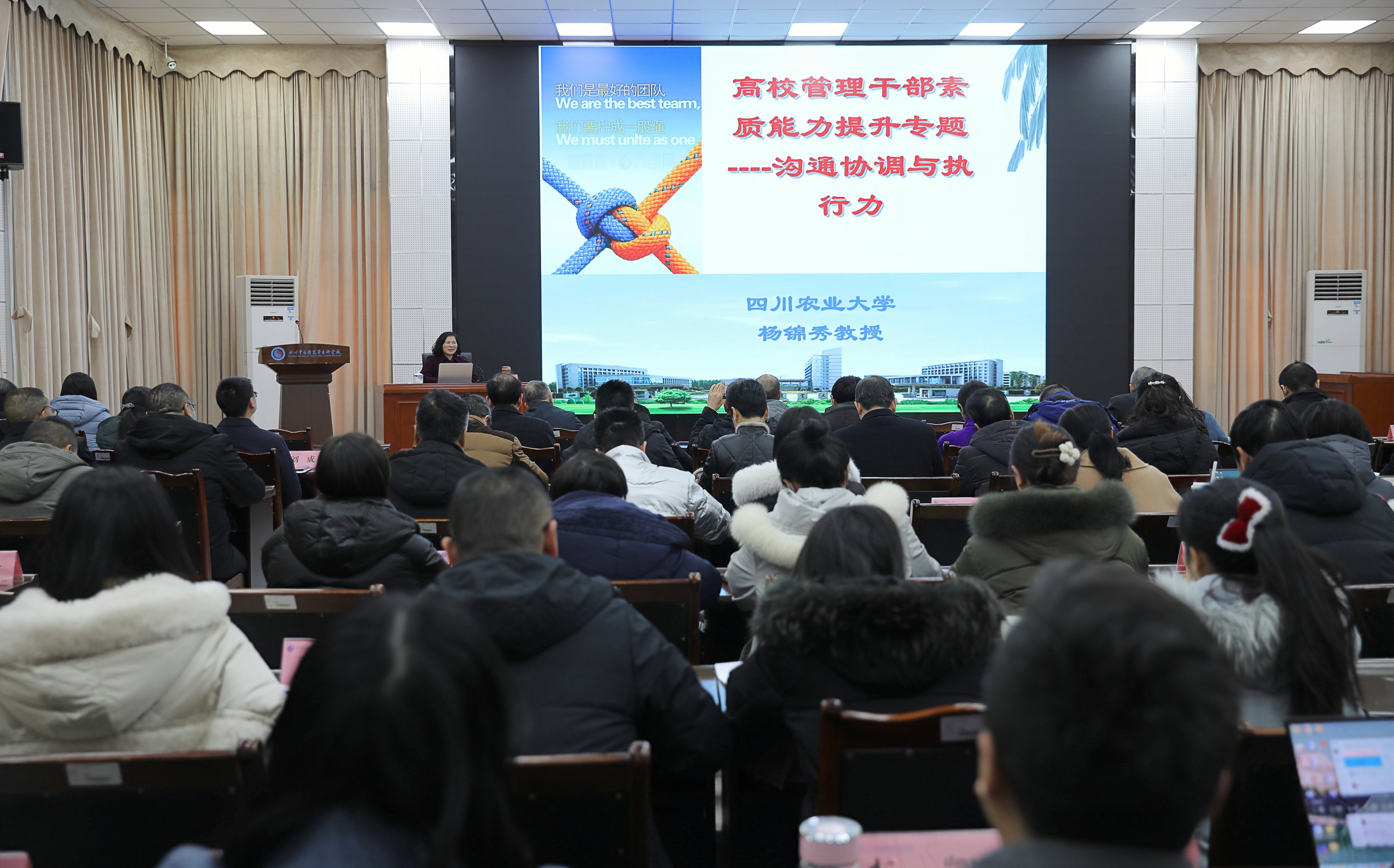 会议邀请到四川农业大学杨锦绣教授作高校管理干部素质能力提升的专题讲座,她围绕领导力、沟通能力、团队管理与建设、问题解决与创新等优秀管理干部素质能力的基本要求,深入剖析了管理概念,强调其重要性,指明目标设定、资源与绩效管理、多任务处理等管理思维能力的关键作用及相互关系,为管理干部管理能力提升提供了全面指导。