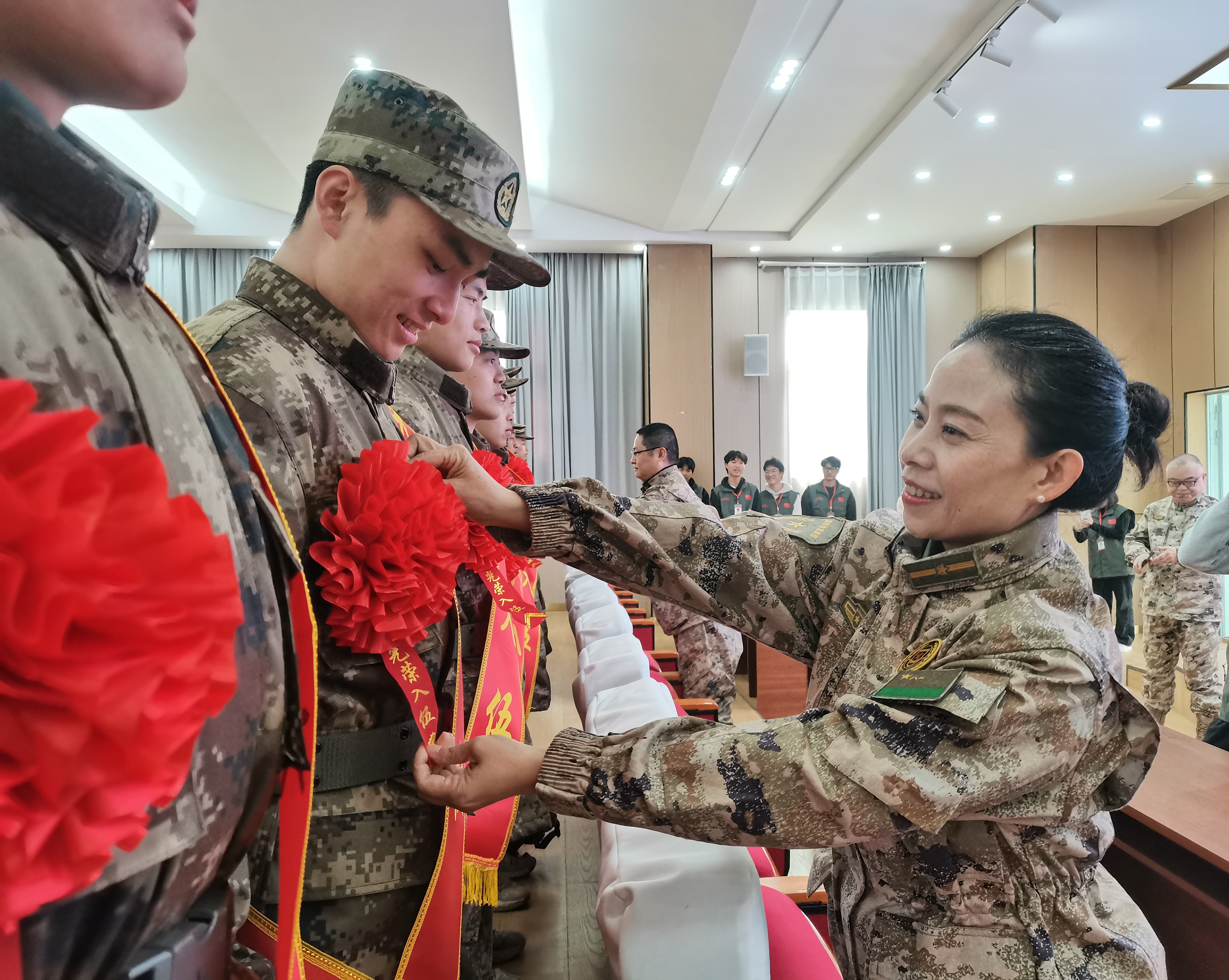 欢送会上,校人民武装部、校党委学生工作部负责人为入伍的学生佩戴了大红花,颁发了入伍纪念品。学校根据每年春秋两季入伍时节,都会组织简短而又隆重的新兵入伍欢送仪式,这不仅是一次师生送别,更是一次致敬与传承,饱含对家国情怀的礼赞、成长蜕变的见证和榜样的力量吸取,让从军报国、爱国奉献的精神在校园里薪火相传!