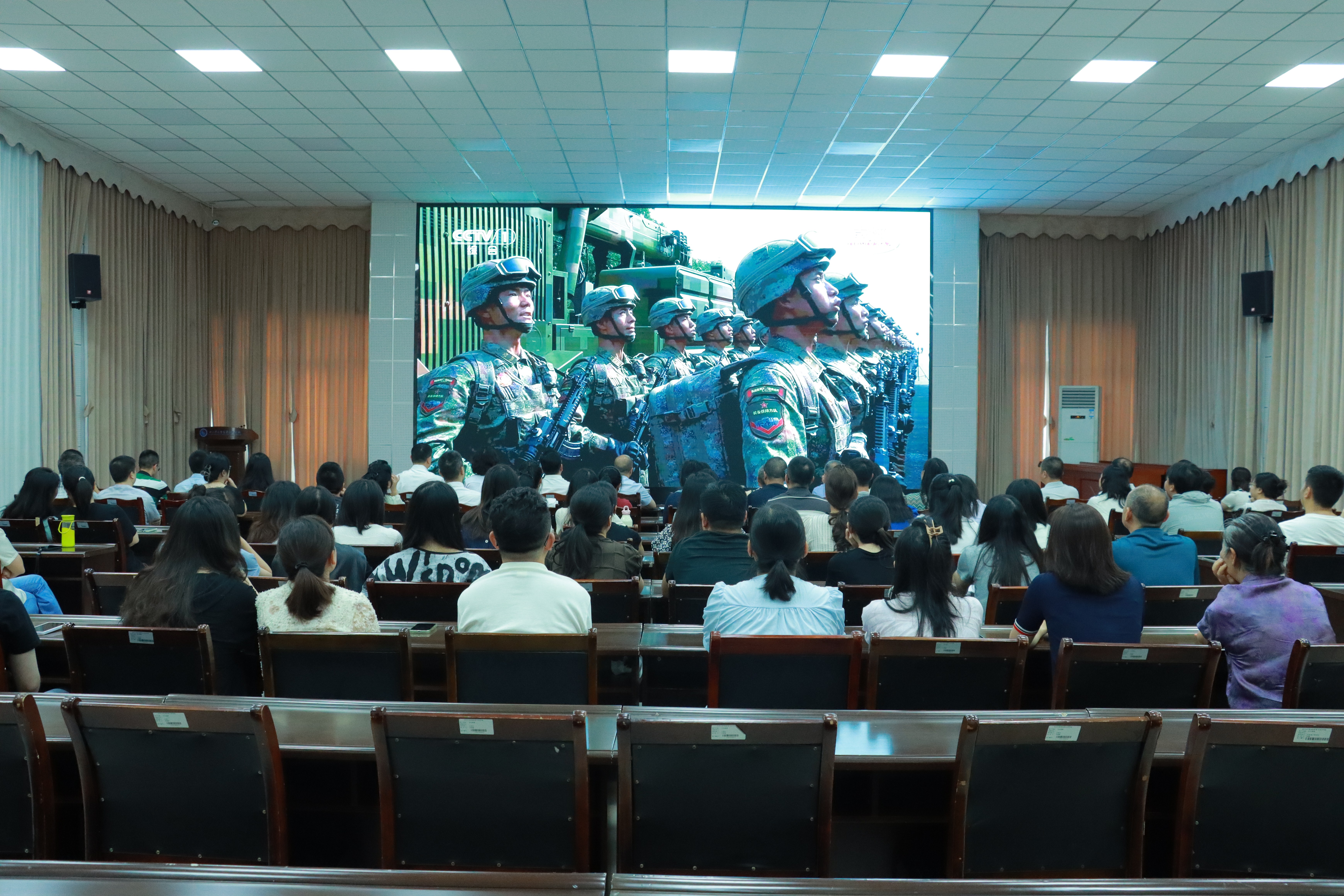 9月3日上午9时,纪念中国人民抗日战争暨世界反法西斯战争胜利80周年阅兵仪式在北京天安门广场隆重举行。我校师生在学术厅、会议室、教室等地集中观看了这一历史性时刻。