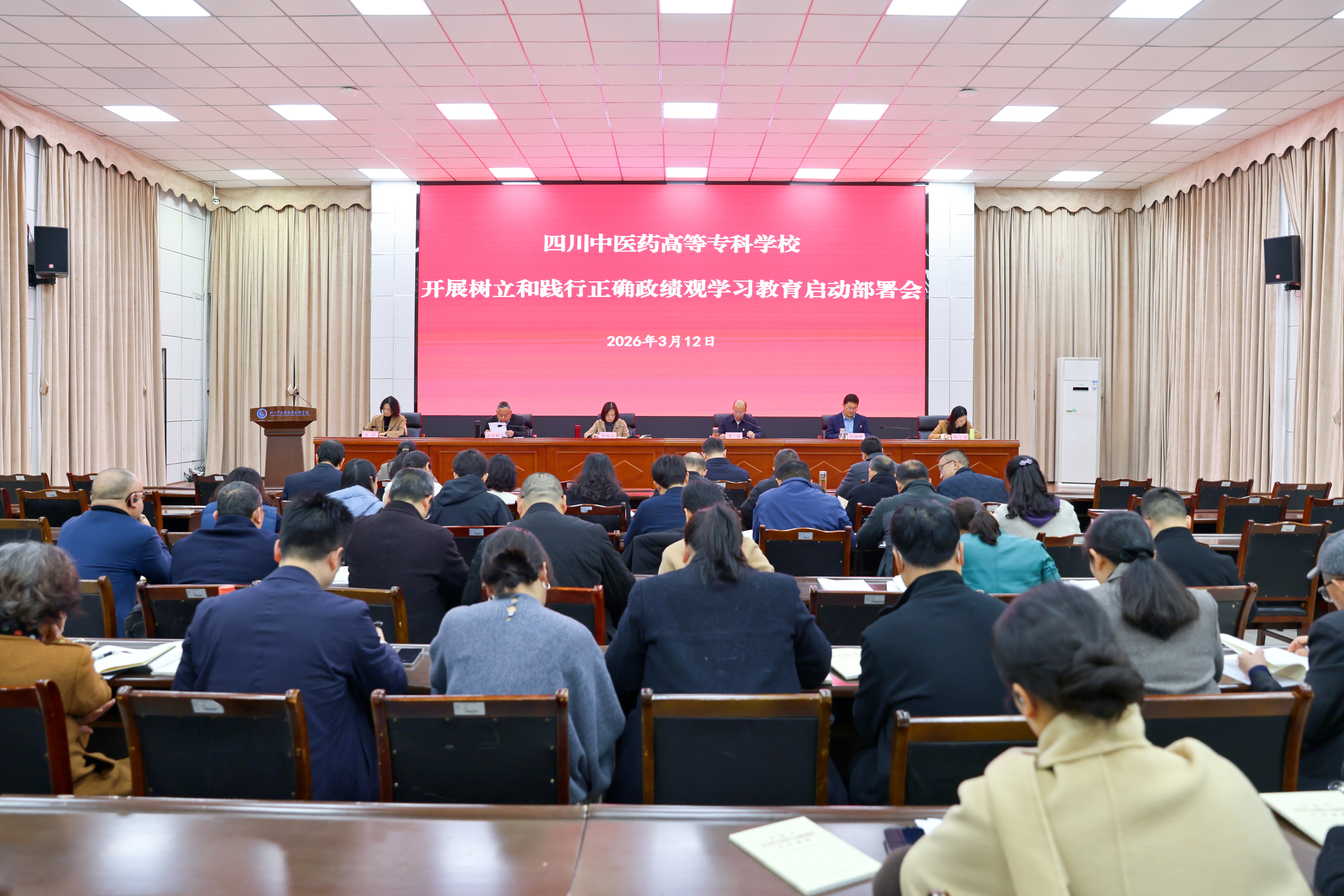 3月12日,我校党建领导小组召开会议,部署启动树立和践行正确政绩观学习教育。校党委书记、领导小组组长李炜弘主持会议并作动员部署讲话,校党委副书记、校长李祥领学《习近平关于树立和践行正确政绩观论述摘编》,校党委副书记商碧辉传达中央及省市党建领导小组会议精神。在家全体校领导、学校党建领导小组成员、全体中层正职干部及主持工作副职干部参加会议。
