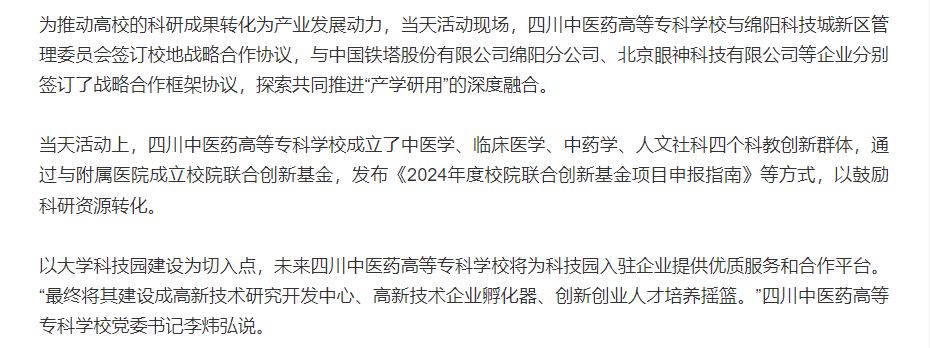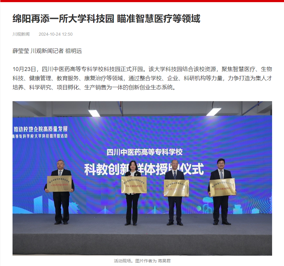 川观新闻:绵阳再添一所大学科技园 瞄准智慧医疗等领域