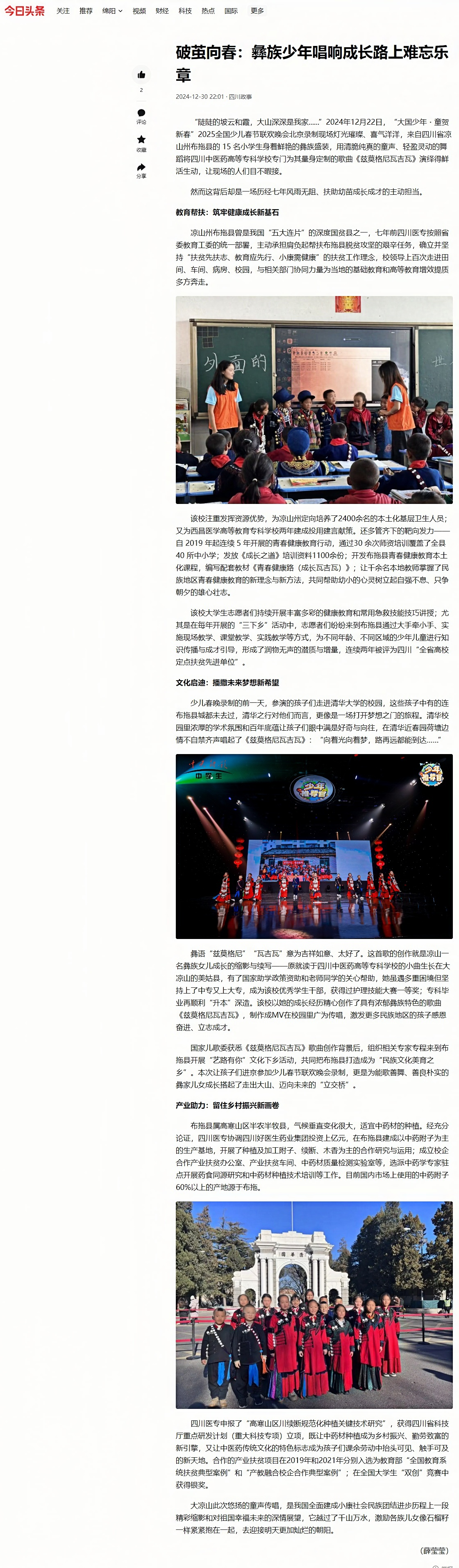 今日头条:破茧向春:彝族少年唱响成长路上难忘乐章