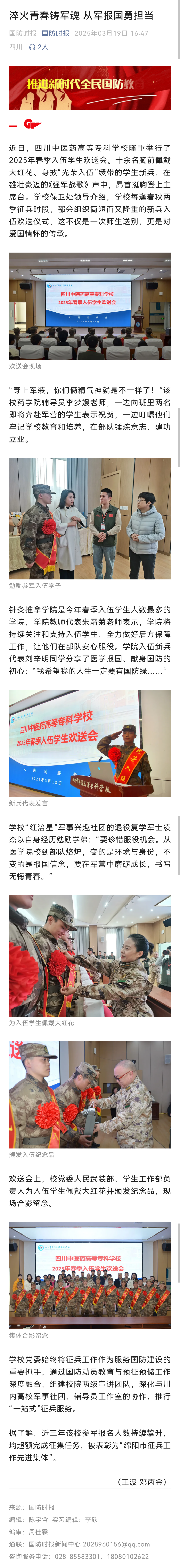 国防时报:淬火青春铸军魂 从军报国勇担当