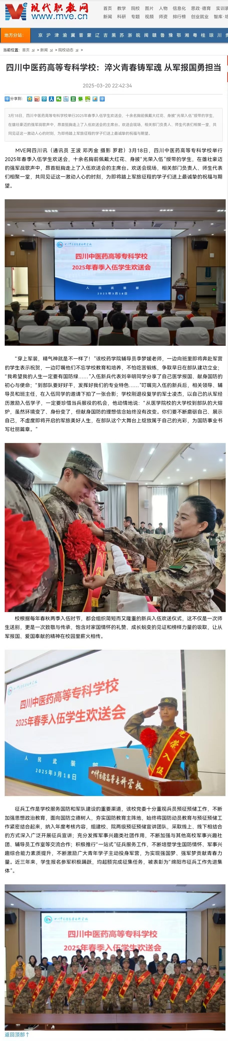 现代职教网:四川中医药高等专科学校:淬火青春铸军魂 从军报国勇担当