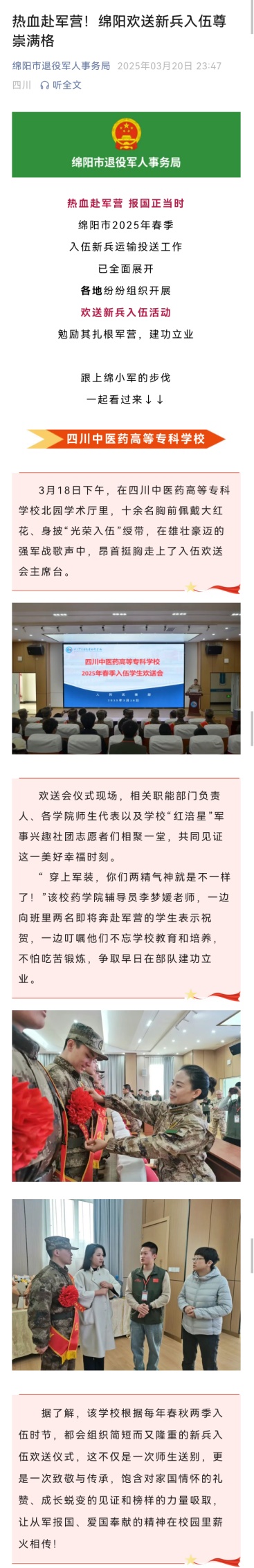 绵阳市退役军人事务局:热血赴军营!绵阳欢送新兵入伍尊崇满格