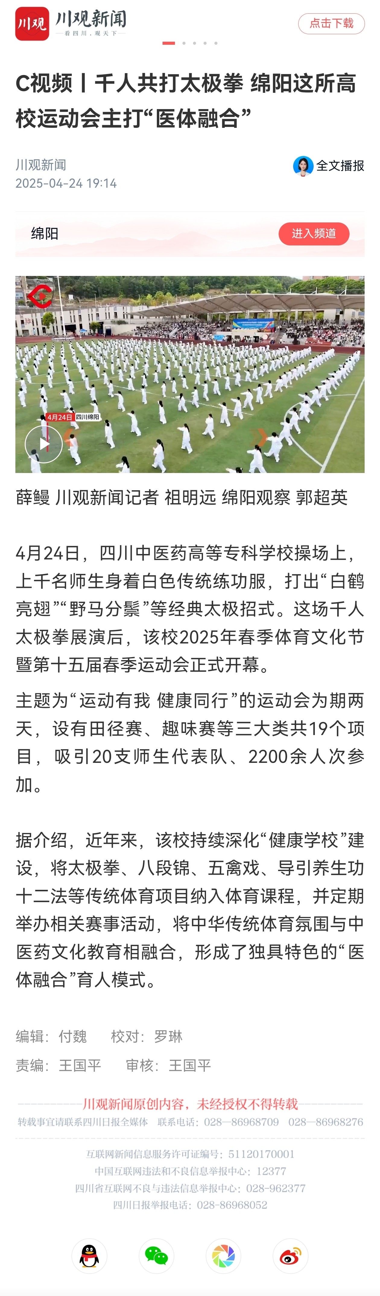 川观新闻:千人共打太极拳 绵阳这所高校运动会主打“医体融合”