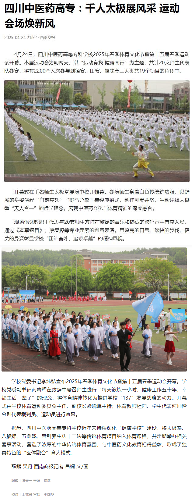 西南商报:四川中医药高专:千人太极展风采 运动会场焕新风