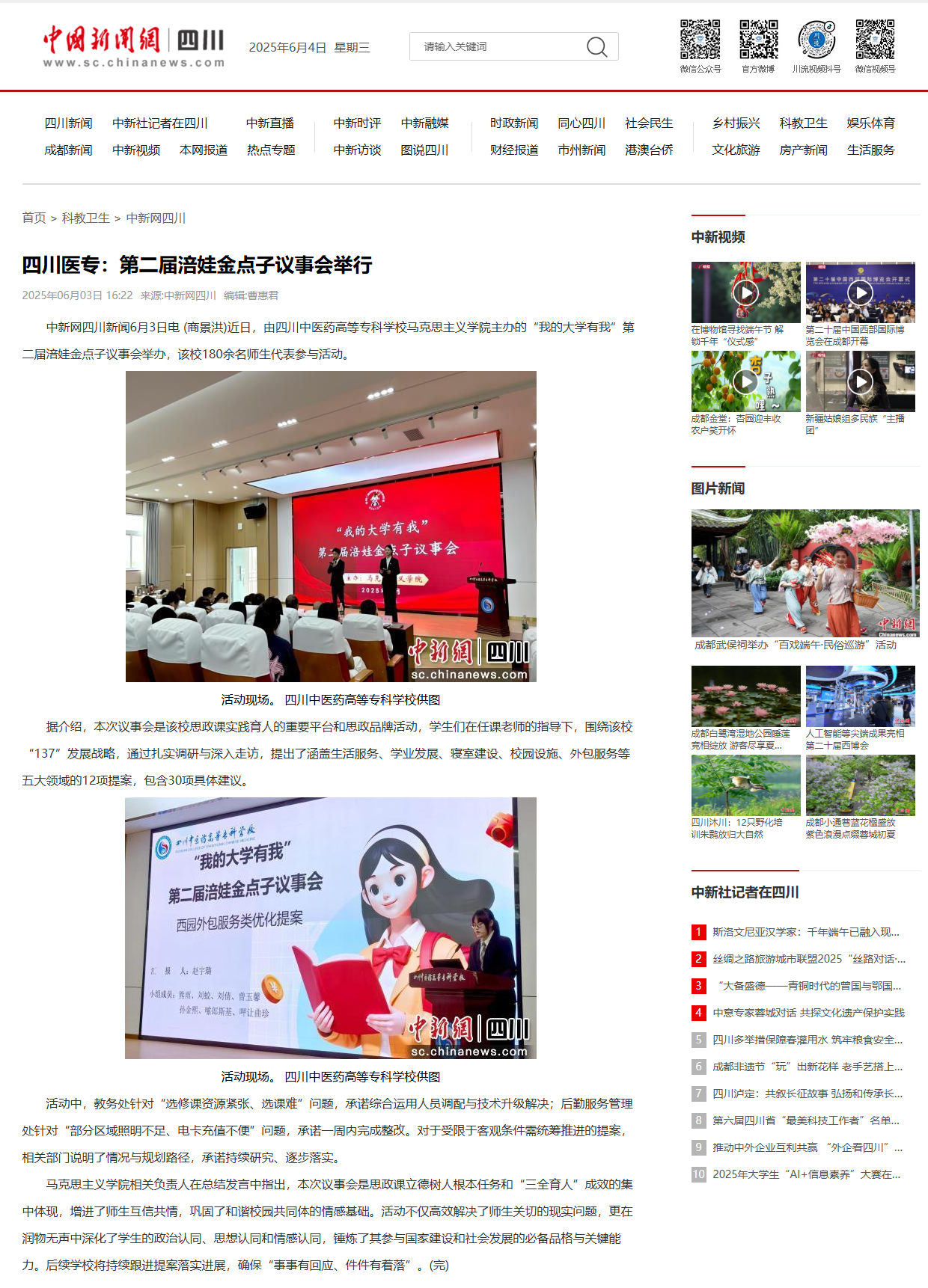 中国新闻网:四川医专:第二届涪娃金点子议事会举行
