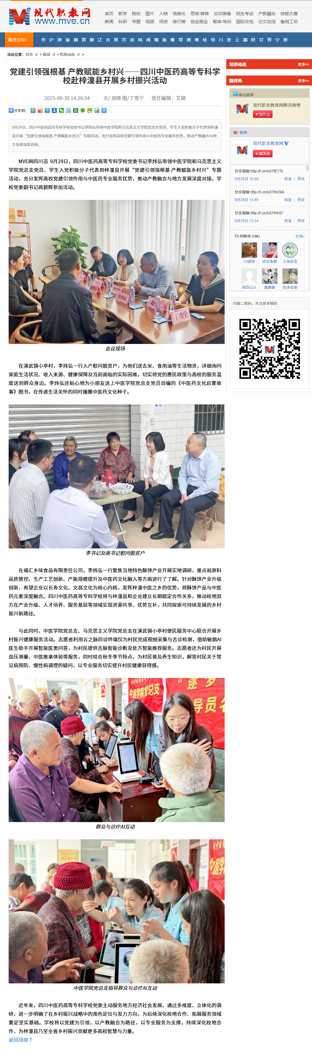 现代职教网:党建引领强根基 产教赋能乡村兴——四川中医药高等专科学校赴梓潼县开展乡村振兴活动