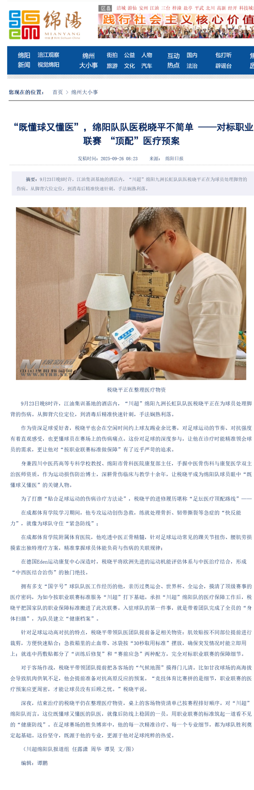 绵阳日报: “既懂球又懂医”,绵阳队队医税晓平不简单