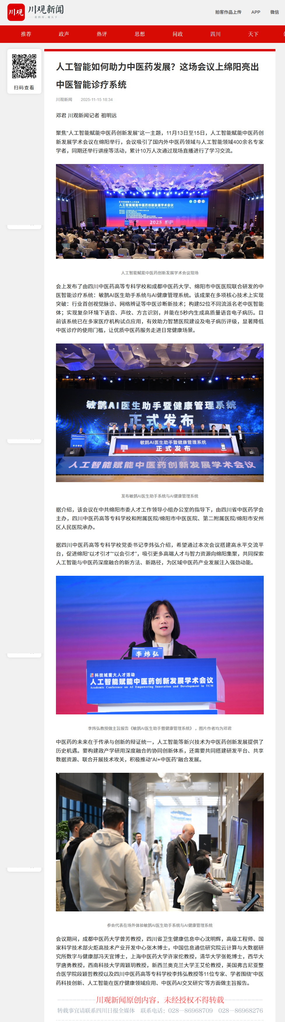 川观新闻:人工智能如何助力中医药发展?这场会议上绵阳亮出中医智能诊疗系统