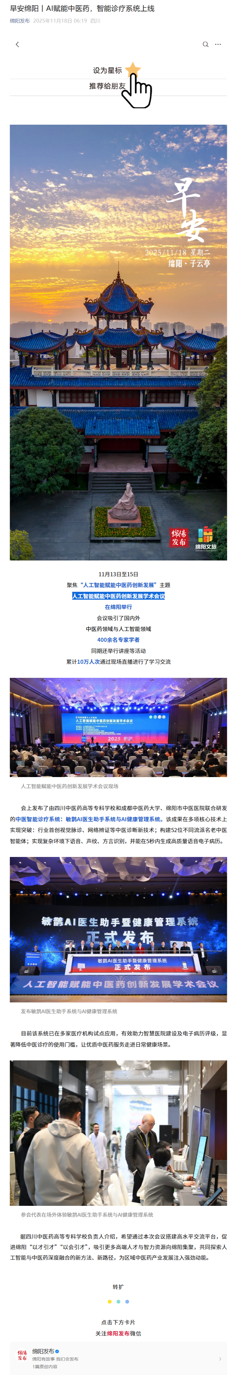 绵阳发布:AI赋能中医药,智能诊疗系统上线