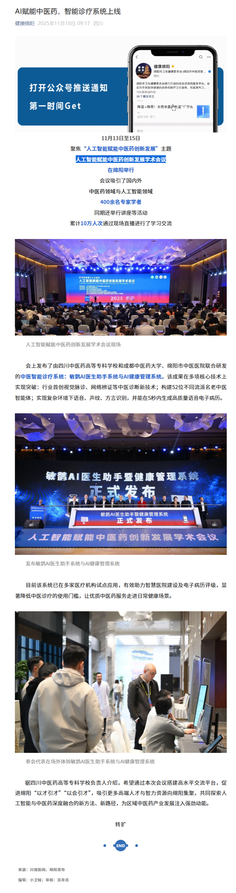 健康绵阳:AI赋能中医药 智能诊疗系统上线