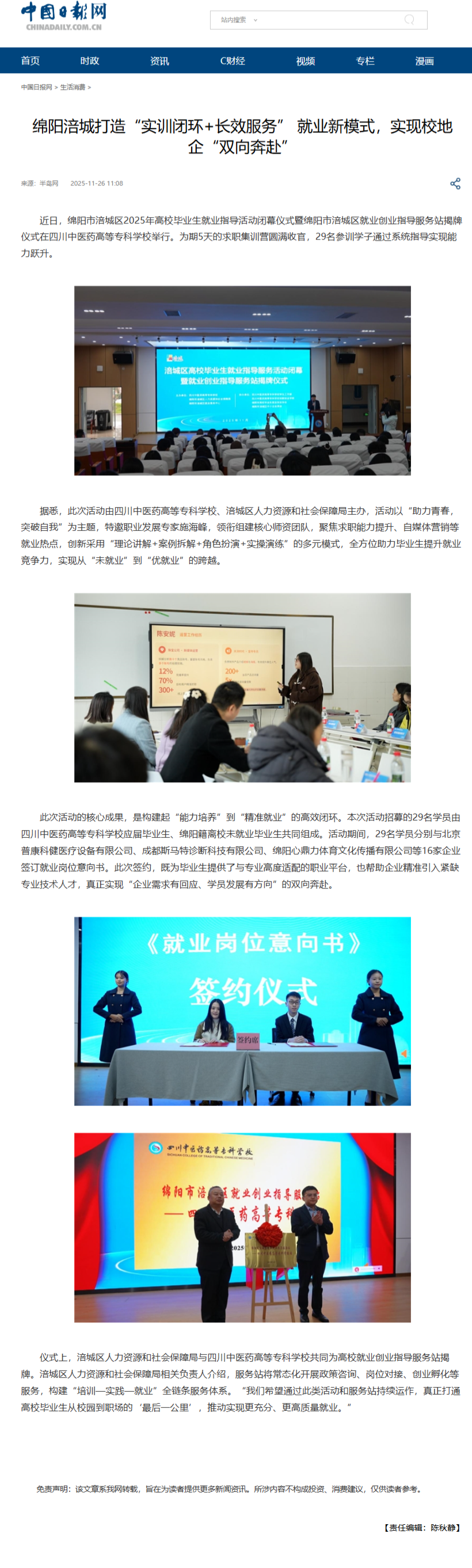 中国日报网:绵阳涪城打造“实训闭环+长效服务” 就业新模式,实现校地企“双向奔赴”